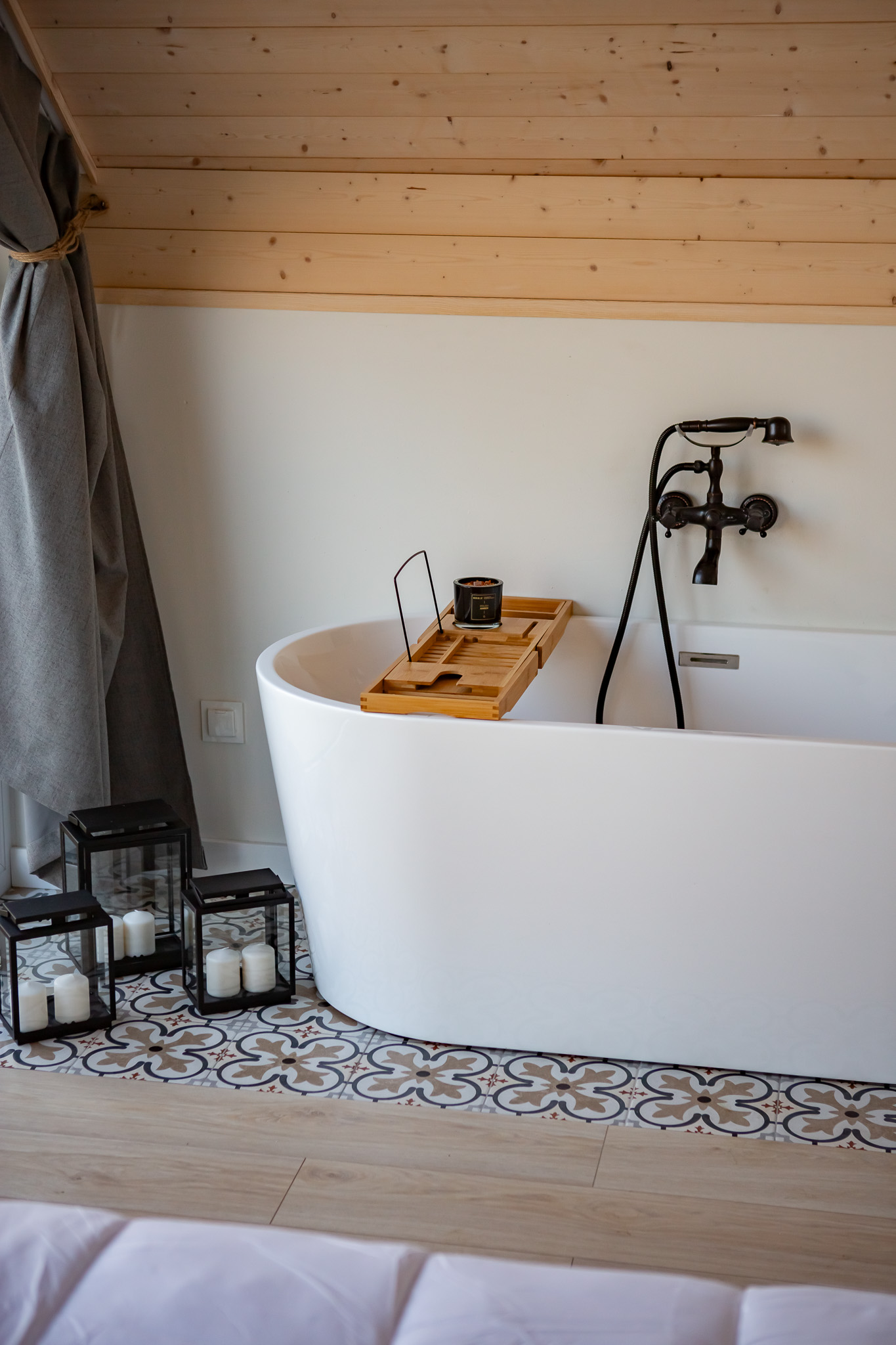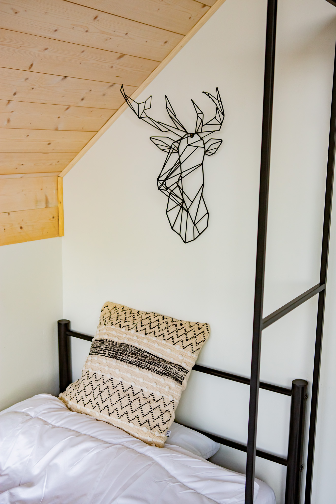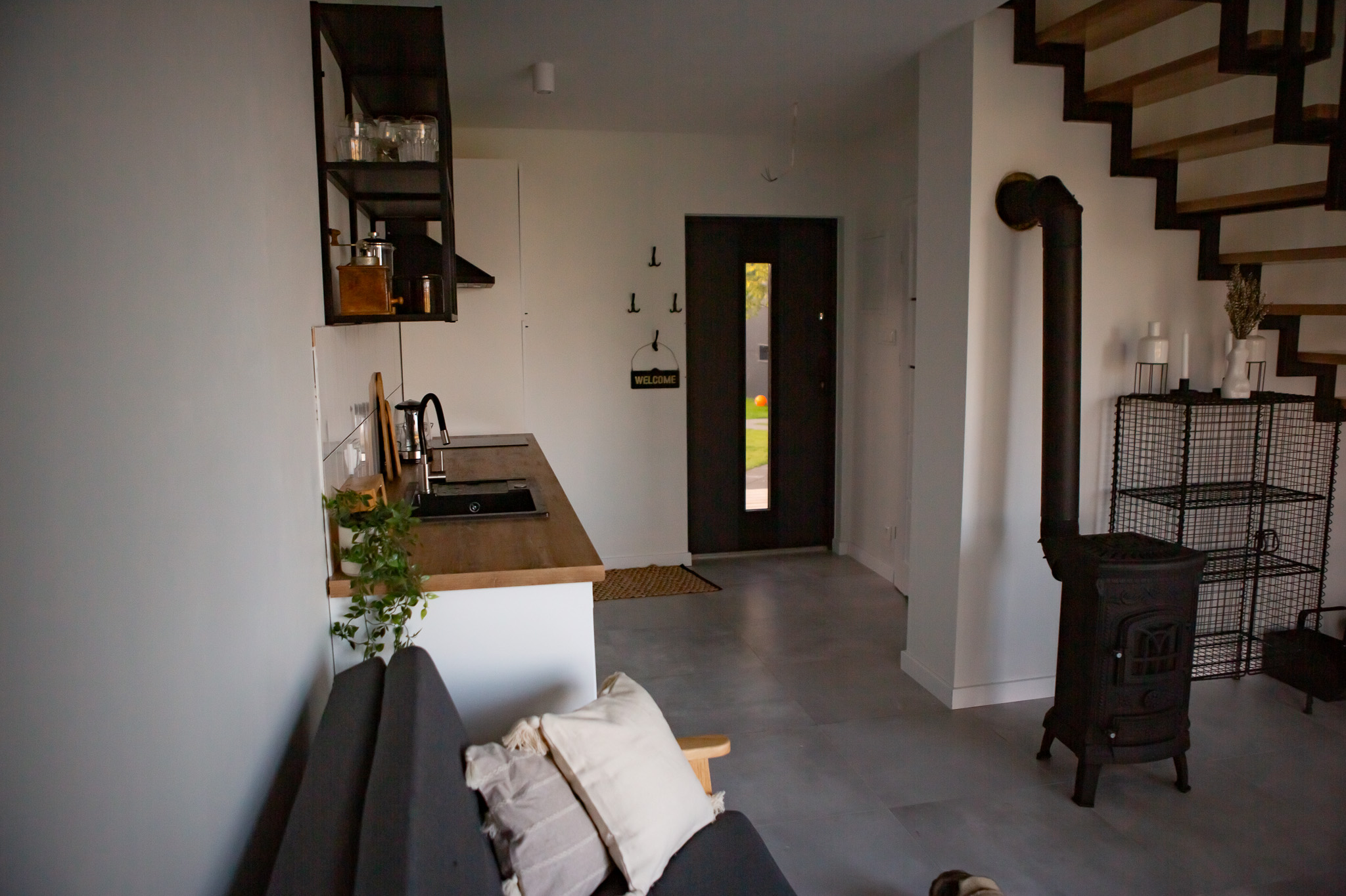 Nasze domki mają po 60 m2. Ich układ jest lustrzanym odbiciem, różnią się stylem. Do wyboru jest klimat Boho ( Ana ) lub Loft ( Leon ).